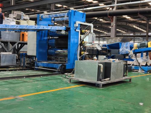 3)螺紋元件材質(zhì)為優(yōu)質(zhì)高速工具鋼6542,高溫真空淬火熱處理;整體硬度:HRC60-64;螺桿元件通過加工中心制作,由曲面成型磨加工;5、料筒1)材質(zhì):45#鋼為基體,∞內(nèi)孔采用優(yōu)質(zhì)雙合金襯套;共十二節(jié),L=290mm/節(jié),第一節(jié)筒體為進(jìn)料筒體,第六為自然排氣;第十節(jié)筒體為抽真空;其余筒體為閉口筒體,筒體采用軟水冷卻;2)加熱區(qū)段:進(jìn)料區(qū)不加熱,其他采用優(yōu)質(zhì)鑄鋁加熱器。6、水冷卻系統(tǒng)1)水泵泵電機(jī)功率:3kw;自動控水電磁閥;手動閥用銅閘閥控制;加大水流量,2)采用環(huán)保風(fēng)冷卻系統(tǒng)(環(huán)保型:發(fā)明專利號:CN201911312134.6)不需要接外循環(huán)水冷卻,不用徘外水;采用閉環(huán)循環(huán)系統(tǒng)7水循環(huán)真空泵,功率:2.2KW,真空泵采用環(huán)保冷卻系統(tǒng)(環(huán)保型:發(fā)明專利號:CN201911312115.3)不需要接外循環(huán)水冷卻,不用徘外水;8、液壓板式換網(wǎng):1)換網(wǎng)器,板式過濾自動換網(wǎng)器,流量截面為圓形;2)液壓缸、液壓站等一套,采用YA-N46抗磨46#液壓油;(油品需客戶自行采購)TPE片材生產(chǎn)線_TPE腳墊片材生產(chǎn)線_佳德(三)片材模具:出料有效寬度2250mm;制品寬度2100mm;制品厚度1-3mm,單邊堵頭450mm模頭材料:P20鋼材,采用不銹鋼加熱棒;模頭流面鍍硬鉻處理。(四)三輥壓光機(jī)JDL-2300 《一套》1、機(jī)架采用型鋼焊接而成,有較高的鋼性。整個(gè)機(jī)架由兩件墻板、頂聯(lián)接板及底座組成,各安裝面均經(jīng)過機(jī)械加工,以確保安裝精度。形式:直立式2、減速箱、電動機(jī)本機(jī)采用輥筒獨(dú)立傳動,每個(gè)輥筒軸端均配有一傳動減速箱,傳動平穩(wěn)、噪音低、效率高,結(jié)構(gòu)緊湊。電動機(jī)采用交流變頻電機(jī),功率:2.2kw×3臺;三輥線速度為0-6米分鐘