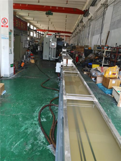 手動(dòng)閥用銅閘閥控制;加大水流量,2)采用環(huán)保風(fēng)冷卻系統(tǒng)(環(huán)保型:發(fā)明專利號(hào):CN201911312134.6)不需要接外循環(huán)水冷卻,不用徘外水;用閉環(huán)循環(huán)系統(tǒng)7.水循環(huán)真空泵;電機(jī)功率:3KW,真空泵采用環(huán)保冷卻系統(tǒng)(環(huán)保型:發(fā)明專利號(hào):CN201911312115.3)不需要接外循環(huán)水冷卻,不用徘外水;采用閉環(huán)循環(huán)系統(tǒng),節(jié)約水成本:功率:3KW真空泵8、液壓板式換網(wǎng):1)換網(wǎng)器,板式過(guò)濾自動(dòng)換網(wǎng)器,流量截面為圓形;2)液壓缸、液壓站等一套,采用YA-N46抗磨46#液壓油;(油品需客戶自行采購(gòu))9、機(jī)頭裝置:1) 熱電偶與壓力傳感器分開(kāi)安裝,分別用于檢測(cè)溫度和壓力(三)水拉條輔機(jī) 1)水槽:一臺(tái),L=8米,加寬加深,槽體為不銹鋼材質(zhì);水槽與吸干機(jī)過(guò)度體一件;不銹鋼材質(zhì),水槽熱水經(jīng)過(guò)濾器到環(huán)保型冷卻器;水槽架里安裝:4組環(huán)保風(fēng)冷卻系統(tǒng)(環(huán)保型:發(fā)明專利號(hào):2020107265672)不需要接外循環(huán)水冷卻,不用徘外水;采用閉環(huán)循環(huán)系統(tǒng) 2)吹干機(jī):2套,功率2.2kw;與物料接觸件均為不銹鋼材質(zhì)。3)龍門切粒機(jī):壹臺(tái),功率11kw,變頻調(diào)速;切粒機(jī)動(dòng)刀刀口采用鎢鋼材質(zhì)4)加長(zhǎng)振動(dòng)篩:工程塑料造粒代加工_工程改性料代加工_一臺(tái),L=2.5m,電機(jī)采用:震動(dòng)專用電機(jī);震動(dòng)量可以調(diào)節(jié)大小:電機(jī)功率率:0.55KW兩臺(tái);振動(dòng)篩篩網(wǎng)采用三層分離物料;大孔直徑φ8mm,小孔直徑φ2.5mm,不銹鋼材質(zhì),振動(dòng)篩出廠時(shí);振動(dòng)量調(diào)節(jié)到最小5)風(fēng)吹料倉(cāng):一套,1m料倉(cāng)一件,不銹鋼材質(zhì);采用φ130mm不銹鋼管聯(lián)接;3kw物料輸送風(fēng)機(jī)。